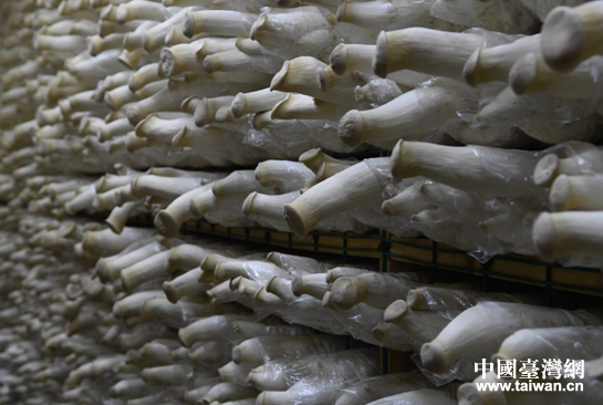 整齊排列的杏鮑菇貨架。(圖片來源:四川省臺辦)