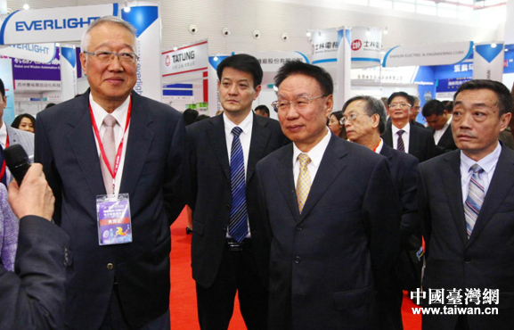 中國臺灣網(wǎng)10月30日馬鞍山訊 10月26日至29日,由安徽省臺辦、省經(jīng)信委、馬鞍山市政府共同主辦的2018第七屆海峽兩岸(馬鞍山)電子信息博覽會在馬鞍山市舉行,海峽兩岸關(guān)系協(xié)會副會長李亞飛、安徽省政協(xié)副主席牛立文、安徽省臺辦主任劉泉、馬鞍山市委書記張岳峰、馬鞍山市人民政府市長左俊以及臺灣電電公會理事長郭臺強、臺灣工業(yè)總會副理事長林明儒等出席開幕式并巡館。