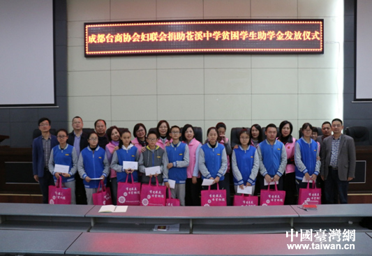 成都臺(tái)商協(xié)會(huì)婦聯(lián)會(huì)赴廣元市捐助貧困學(xué)生。(圖片來(lái)源:廣元市臺(tái)辦)