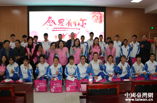 中國(guó)臺(tái)灣網(wǎng)11月1日廣元訊 10月24日至25日,成都臺(tái)商協(xié)會(huì)婦聯(lián)會(huì)一行13人在會(huì)長(zhǎng)詹玉滿的帶領(lǐng)下,到廣元市蒼溪中學(xué)、蒼溪縣職業(yè)高級(jí)中學(xué)、昭化區(qū)衛(wèi)子小學(xué)走訪慰問(wèn)受資助貧困學(xué)生,向他們發(fā)放生活資助金和慰問(wèn)品,并與學(xué)生們交流互動(dòng)。