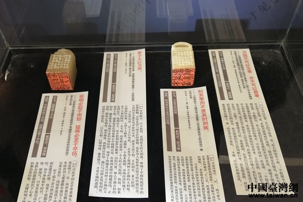 篆刻展展覽作品。(中國(guó)臺(tái)灣網(wǎng) 張露露 攝)