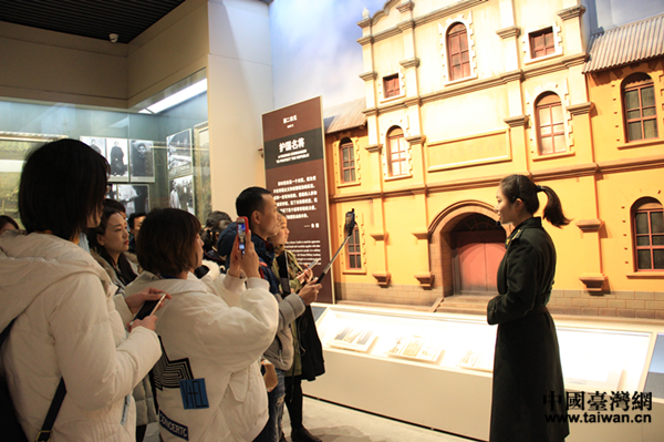 記者們認(rèn)真聽講解員介紹朱德的成長(zhǎng)經(jīng)歷。(中國(guó)臺(tái)灣網(wǎng) 李寧 攝)