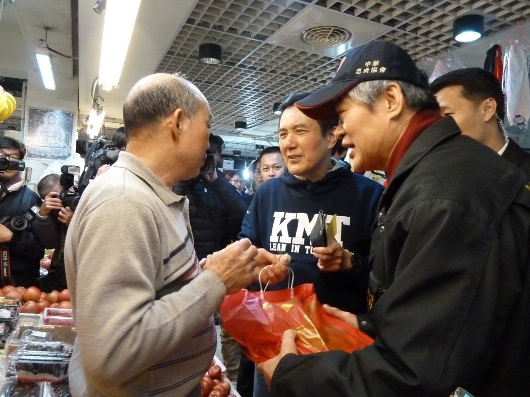 馬英九買年貨獲民眾熱情簇擁回應(yīng)。(圖片來源:臺灣《聯(lián)合報》)