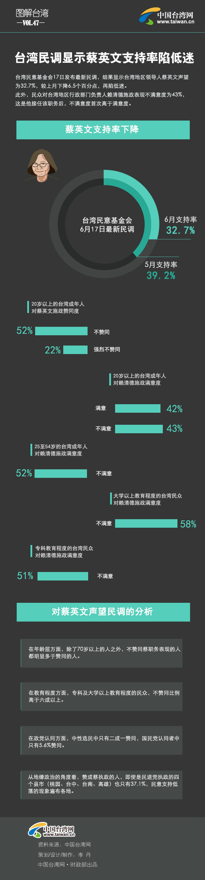 【圖解臺灣】臺灣民調(diào)顯示蔡英文支持率陷低迷
