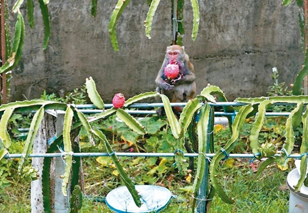 屏東縣滿州鄉(xiāng)火龍果又價(jià)跌,果農(nóng)苦笑:就讓猴子盡情享用吧。(圖片來源:臺灣《聯(lián)合報(bào)》)