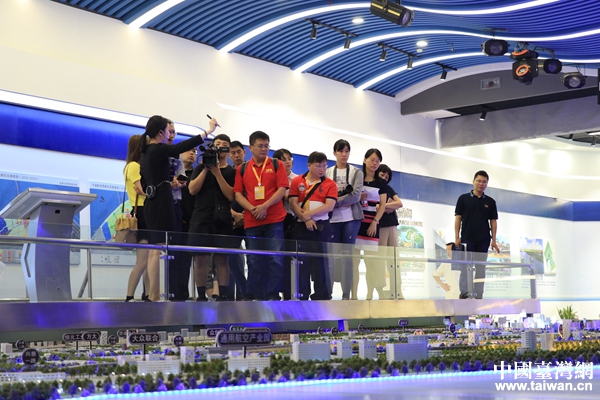 兩岸記者來到寧波杭州灣新區(qū)城市展覽館參觀。(中國臺灣網 李奕均 攝)
