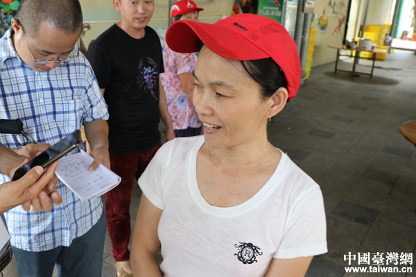 好圣村樂(lè)家家茶飯店老板娘林春雪接受記者采訪。(中國(guó)臺(tái)灣網(wǎng) 尹賽楠 攝)