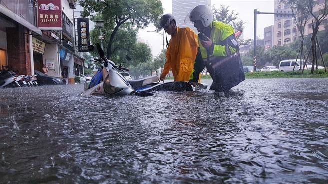 高雄23日上午暴雨導(dǎo)致市區(qū)多處淹水, (圖片來自臺媒)