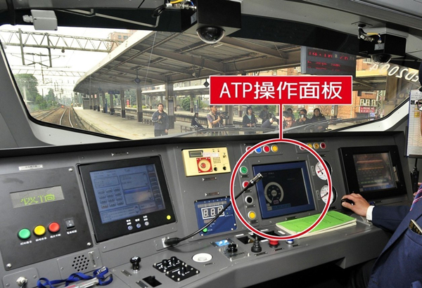 臺(tái)鐵普悠瑪號(hào)列車(chē)駕駛艙控制臺(tái)上司機(jī)員前方熒幕即為“ATP操作面板”,上方有顯示時(shí)速。 (圖片來(lái)源:臺(tái)灣《聯(lián)合報(bào)》)
