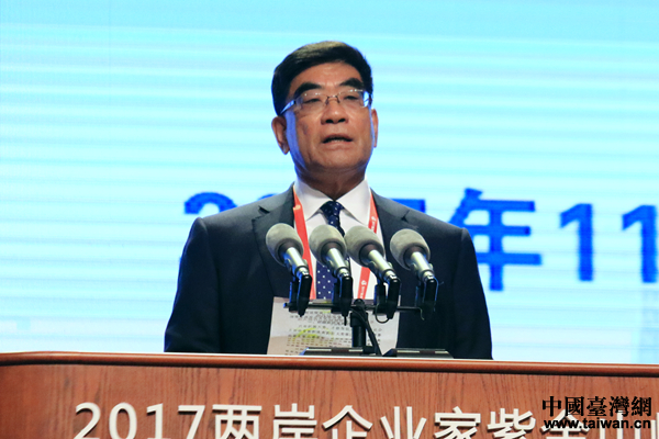 11月6日,2017兩岸企業(yè)家紫金山峰會在江蘇南京舉行。峰會能源石化裝備產(chǎn)業(yè)合作推進(jìn)小組召集人傅成玉做主旨演講。(中國臺灣網(wǎng) 尹賽楠 攝)