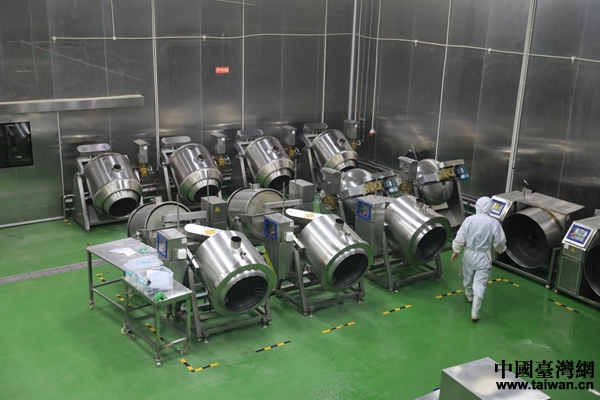 車間設(shè)備及“全副武裝”的工作人員。(中國臺灣網(wǎng) 李奕均 攝)