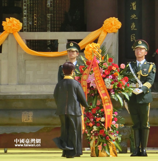 中國國民黨前主席洪秀柱敬獻花籃(中國臺灣網 王文英 攝)