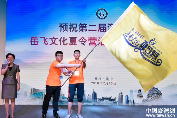 中國(guó)臺(tái)灣網(wǎng)7月13日重慶訊 為促進(jìn)兩岸青少年一同傳承岳飛愛(ài)國(guó)主義精神,認(rèn)識(shí)中華優(yōu)秀文化的魅力,7月10日,第二屆海峽兩岸岳飛文化夏令營(yíng)在重慶市文化宮舉行開(kāi)營(yíng)儀式。市臺(tái)辦主任胡奕向夏令營(yíng)學(xué)生代表授營(yíng)旗并宣布開(kāi)營(yíng),標(biāo)志著海峽兩岸師生正式開(kāi)啟了領(lǐng)略岳飛文化的暑期之旅。在開(kāi)營(yíng)儀式上,兩岸學(xué)子們觀(guān)看岳飛文化夏令營(yíng)主題宣傳片《共同記憶》,同臺(tái)演出精彩節(jié)目,感受岳飛文化思想,攜手傳承、發(fā)揚(yáng)中華民族優(yōu)秀文化,促進(jìn)了兩岸青少年心靈契合。