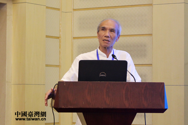 全國臺(tái)灣研究會(huì)常務(wù)理事、上海國際問題研究院特聘研究員周志懷發(fā)表主題演講。(中國臺(tái)灣網(wǎng) 張潔 攝)
