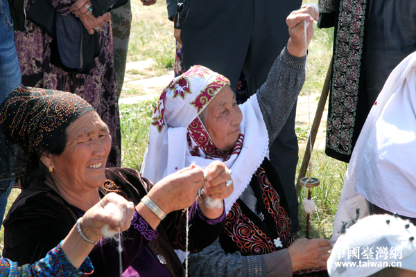 阿克奇村老人在捻羊毛線。(中國臺(tái)灣網(wǎng) 王怡然 攝)
