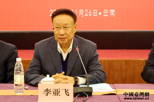 中國(guó)臺(tái)灣網(wǎng)11月27日昆明訊 (記者 張潔)11月26日,第四屆兩岸智庫(kù)學(xué)術(shù)論壇在云南昆明召開(kāi)。來(lái)自海峽兩岸多家智庫(kù)與學(xué)術(shù)機(jī)構(gòu)的40余位專家學(xué)者匯聚一堂,圍繞“新形勢(shì)下兩岸關(guān)系:挑戰(zhàn)與應(yīng)對(duì)”主題展開(kāi)討論。海協(xié)會(huì)副會(huì)長(zhǎng)李亞飛,中國(guó)社會(huì)科學(xué)院臺(tái)灣研究所所長(zhǎng)楊明杰、兩岸關(guān)系和平發(fā)展協(xié)同創(chuàng)新中心執(zhí)行主任劉國(guó)深、臺(tái)灣二十一世紀(jì)基金會(huì)副董事長(zhǎng)高思博等出席論壇開(kāi)幕式。