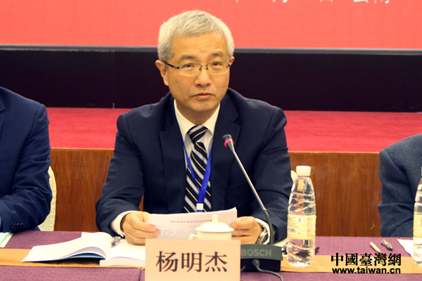中國(guó)社會(huì)科學(xué)院臺(tái)灣研究所所長(zhǎng)楊明杰在論壇開(kāi)幕式上致辭。(中國(guó)臺(tái)灣網(wǎng) 張潔 攝)
