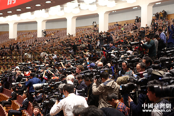 中外記者報(bào)道中國共產(chǎn)黨第十九次全國代表大會(huì)閉幕會(huì)。(中國臺(tái)灣網(wǎng) 于斯文 攝)