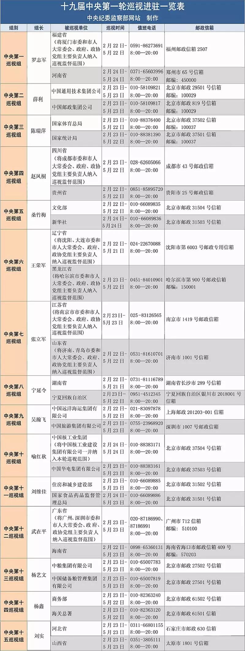 中央巡視組巡視期間設(shè)專門電話及郵箱