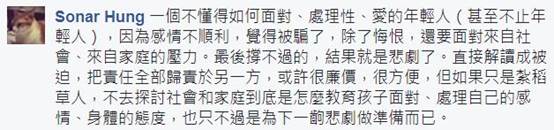 侃爺認(rèn)為,在林奕含的事件中,也許與其揪著所謂的“真相”不放,不如像下面這位網(wǎng)友所說(shuō)的那樣,多去探討下社會(huì)和家庭到底應(yīng)該怎樣教育孩子面對(duì)和處理自己的感情與身體,以免下一個(gè)“林奕含式悲劇”的再發(fā)生。