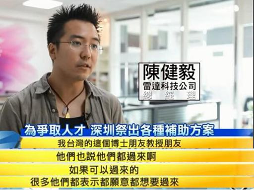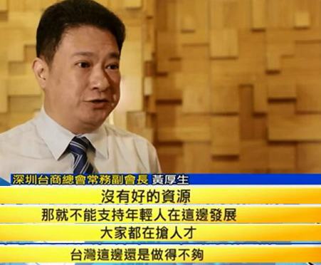 深圳臺商總會常務副會長黃厚生更直言,臺灣沒有好的資源自然不能支持年輕人,尤其是臺灣人才的發(fā)展。