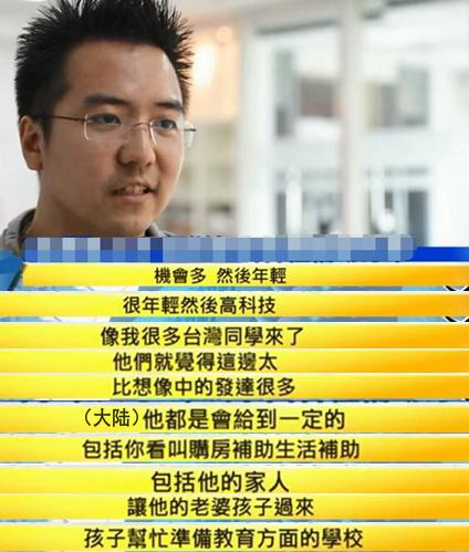 有人說:大陸給臺灣年輕人帶來的工作機會多,而且福利好,連家人生活、孩子教育都會幫忙照顧;