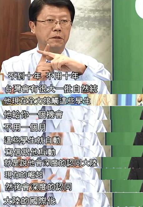 國民黨“中常委”謝龍介對此更表示:不用10年,臺灣會有一大批“自然統(tǒng)”,因為這些與大陸接觸過的臺灣學生會愈發(fā)深刻的認同大陸的崛起以及大陸的國際化。