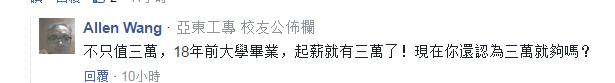 更有人表示3萬根本不夠,“18年前(臺(tái)灣)大學(xué)畢業(yè)生起薪就有3萬了”!