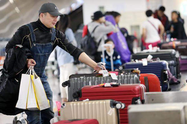 吳斯懷指出,蔡英文是吃了秤砣鐵了心,連臺(tái)灣人最在意的春節(jié)團(tuán)圓,都可以棄臺(tái)商于不顧。圖為1名搭乘東方航空的旅客在桃園機(jī)場(chǎng)領(lǐng)取行李。(圖片來(lái)源:臺(tái)灣《中時(shí)電子報(bào)》)