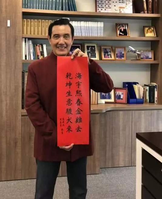 據(jù)報道,馬英九日前前往臺南市議員林燕祝服務(wù)處,現(xiàn)場揮毫,送出3幅“狗年旺旺 財源滾滾”春聯(lián),當(dāng)時就吸引不少民眾詢問,今年正式版的自制春聯(lián)“海宇熙春金雞去 乾坤生意駿犬來”一推出,10萬份一天就被搶光,目前共加印22萬份,在66處發(fā)放點重新“上架”,以供民眾免費索取。