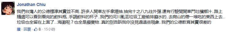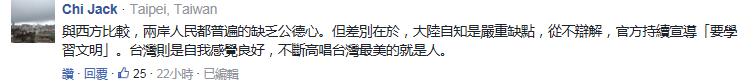 崗山之眼的不文明游客行徑一經(jīng)曝光便引發(fā)了許多臺(tái)灣網(wǎng)友的談?wù)摚?strong>其中很大一部分人認(rèn)為臺(tái)灣人的公德標(biāo)準(zhǔn)確實(shí)不高,需要改進(jìn),“臺(tái)灣人本來(lái)就沒(méi)有比較優(yōu)越,作過(guò)服務(wù)業(yè)的就知道”、“以前在機(jī)構(gòu)服務(wù)最討厭的就是臺(tái)灣人”。