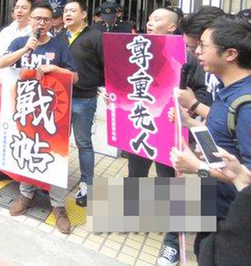 翁紹輝表示,國民黨青年部今天就是要表達另一種聲音,并要對“自由臺灣黨”下戰(zhàn)帖,希望他們出面,大家來理性辯論,不要像孬種一樣躲在樓上,而且他們不認(rèn)同“中華X國”,卻要“中華x國”的警察保護,實在非常諷刺。
