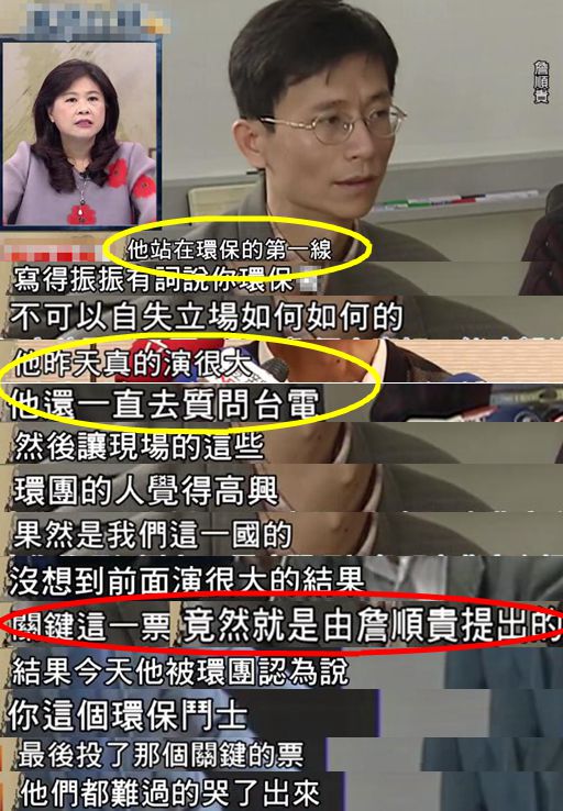 據(jù)悉,在當(dāng)天的審查現(xiàn)場(chǎng),詹順貴先是假模假樣地質(zhì)疑臺(tái)電,讓環(huán)團(tuán)抱持希望,沒想到所有的前戲都是為了最后的“關(guān)鍵贊同票”,氣得環(huán)團(tuán)直哭,前臺(tái)北市副市長(zhǎng)李永萍不禁痛批詹“真的演很大”!