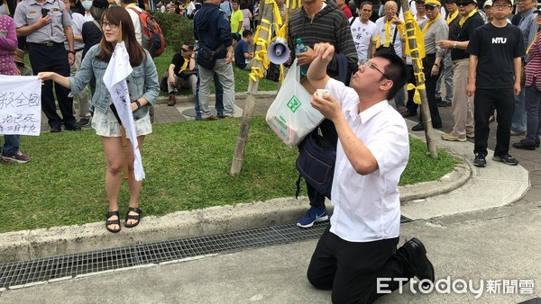 反管學生潘儒鋒帶頭,作法抗議“臺大法治已死”。(圖片來源:臺灣“東森新聞云”)