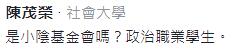 許多網(wǎng)友看到截圖后怒批“以為是即興表演,原來是早有規(guī)劃的劇本……看來給分要再扣了……”“都這貨色,真為臺灣未來悲哀”“惡心到極點,真想吐!”“穿幫了!還有年中獎金?”“碰瓷碰瓷”“真是無恥的下三爛”“不得獎太可惜了”。潘也遭網(wǎng)友質(zhì)疑,曾參與“太陽花學運”,是民進黨“綠衛(wèi)兵”、蔡英文青年軍。網(wǎng)友酸說,民進黨這出戲應(yīng)該可以報名下一屆奧斯卡了,片名就叫做“看不見的摔角手”,應(yīng)該可以拿個最無羞恥心獎回來。