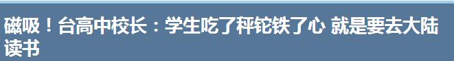 臺生赴大陸讀書原是為了自身更好地發(fā)展,臺當(dāng)局卻按捺不住了。據(jù)《中時電子報》報道,臺灣建中和武陵高中校長因幫畢業(yè)生寫推薦信到大陸升學(xué)、以及發(fā)表有關(guān)臺生赴陸求學(xué)的相關(guān)言論,竟雙雙受到檢調(diào)機關(guān)的關(guān)切。此舉引發(fā)島內(nèi)各界批評,有臺灣學(xué)生對此大罵。
