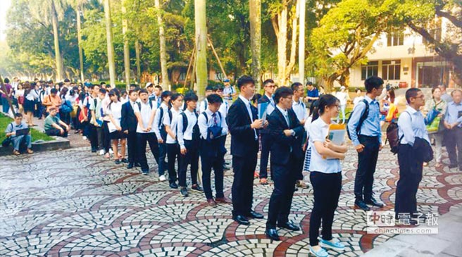 廣州中山大學(xué)大排長龍等候面試的臺灣高中生。(圖片取自臺媒)