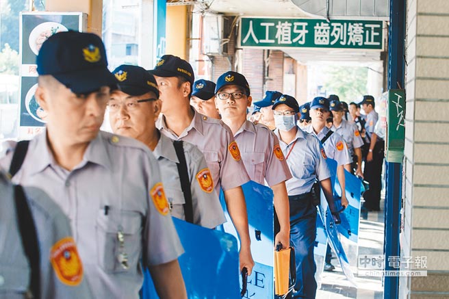 圖為去年7月蔡英文在臺(tái)中市林酒店參訪時(shí),警民對(duì)峙情形。(圖片來源:臺(tái)灣《聯(lián)合報(bào)》)