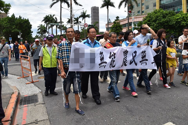 鳳梨農(nóng)北上抗議。(圖片來(lái)源;臺(tái)灣《聯(lián)合報(bào)》)