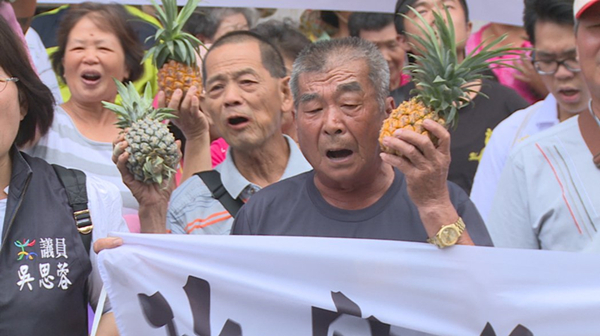 鳳梨農(nóng)北上抗議。(圖片來(lái)源:臺(tái)灣“東森新聞云”)