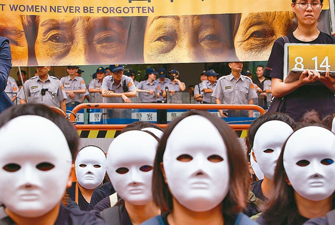1937年12月抗戰(zhàn)期間,日軍攻陷南京,30萬平民遭屠殺及強暴,日軍嗣后在亞太各地設(shè)立慰安所,以欺騙、脅迫、綁架等方式強征占領(lǐng)區(qū)年輕婦女成為慰安婦供日軍奸淫,受害婦女約20萬到40萬人,臺灣至少有1200名婦女受害。