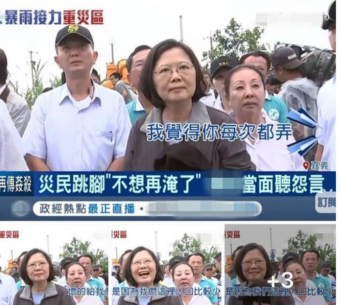不過,這還沒完,在聆聽災(zāi)民抱怨時,蔡英文竟整個笑噴,再度引發(fā)爭議。據(jù)臺媒報道,一位女性災(zāi)民當場向蔡英文抱怨抽水機問題“我覺得你每次都用壞的給我們,是不是因為我們?nèi)丝诒容^少”,沒想到蔡英文聽完竟當場噴笑出來,之后似乎覺得不妥趕緊拿東西遮嘴,隨后又笑嘻嘻地說“下次給你一個新的啦!”