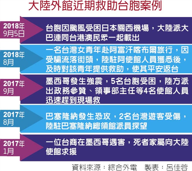 臺媒整理我領(lǐng)事館近期救助臺胞案例。(圖片來源:臺灣“中時電子報”)