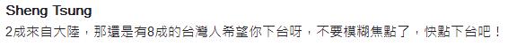 還有網(wǎng)友表示,就算2成來(lái)自大陸,那還有8成臺(tái)灣人希望你下臺(tái)!