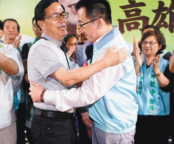 陳水扁預(yù)告要出席兒子陳致中競選總部成立大會。(圖片來源:臺灣《聯(lián)合報》)