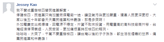 對(duì)此,有網(wǎng)友表示,民進(jìn)黨所謂的“綠色執(zhí)政,質(zhì)量保證”就是把百姓當(dāng)成白癡,等到海水褪去,才知道誰沒穿褲子;還有人認(rèn)為,就不應(yīng)該重啟核四為民進(jìn)黨解套,讓他們繼續(xù)作,使民眾看清“綠營”的嘴臉,“讓臺(tái)灣以后的子子孫孫都痛罵民進(jìn)黨。”