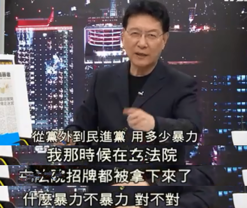 臺灣媒體人在節(jié)目中分享自己的從政經(jīng)歷,當(dāng)年民進黨鬧起來的時候,“立法院”的招牌都被摘下來了,還有臉批“暴力”?