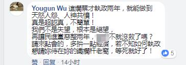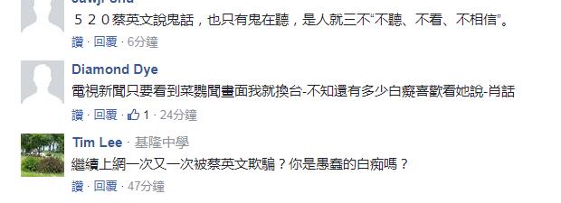 更有網(wǎng)友實時留言吐槽“以民進黨自我感覺良好的程度,應該是看不到這些質(zhì)疑”,對此蔡英文竟然回應“現(xiàn)在不是看到了嗎?”……