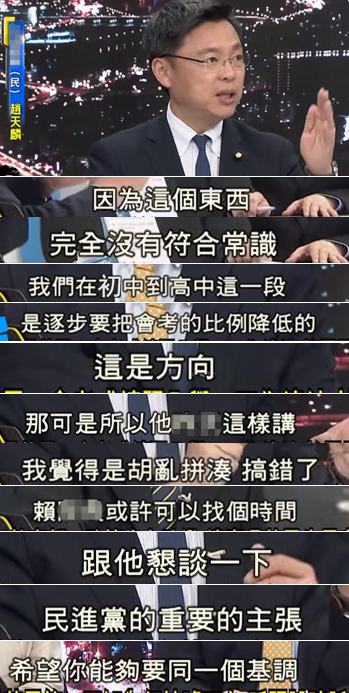 接著吳茂昆以英國會考為例,說“會考不只和升學(xué)有關(guān),也許有一天,也會和工作連結(jié)”,更指出“也許未來我們可以走向這個階段”。此話一出立即引發(fā)爭議,有記者當(dāng)場提問,若如此的話“是否與免試入學(xué)的政策相左?”,這時的吳茂昆似乎終于發(fā)現(xiàn)自己失言了,頻顧左右找救兵。
