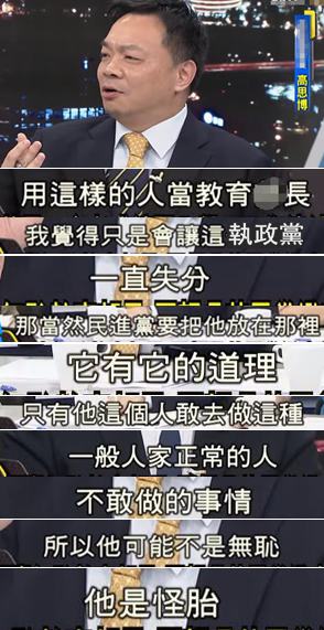 “行政院”前政務(wù)委員高思博分析后認(rèn)為他可能不是無恥而是“怪胎”……